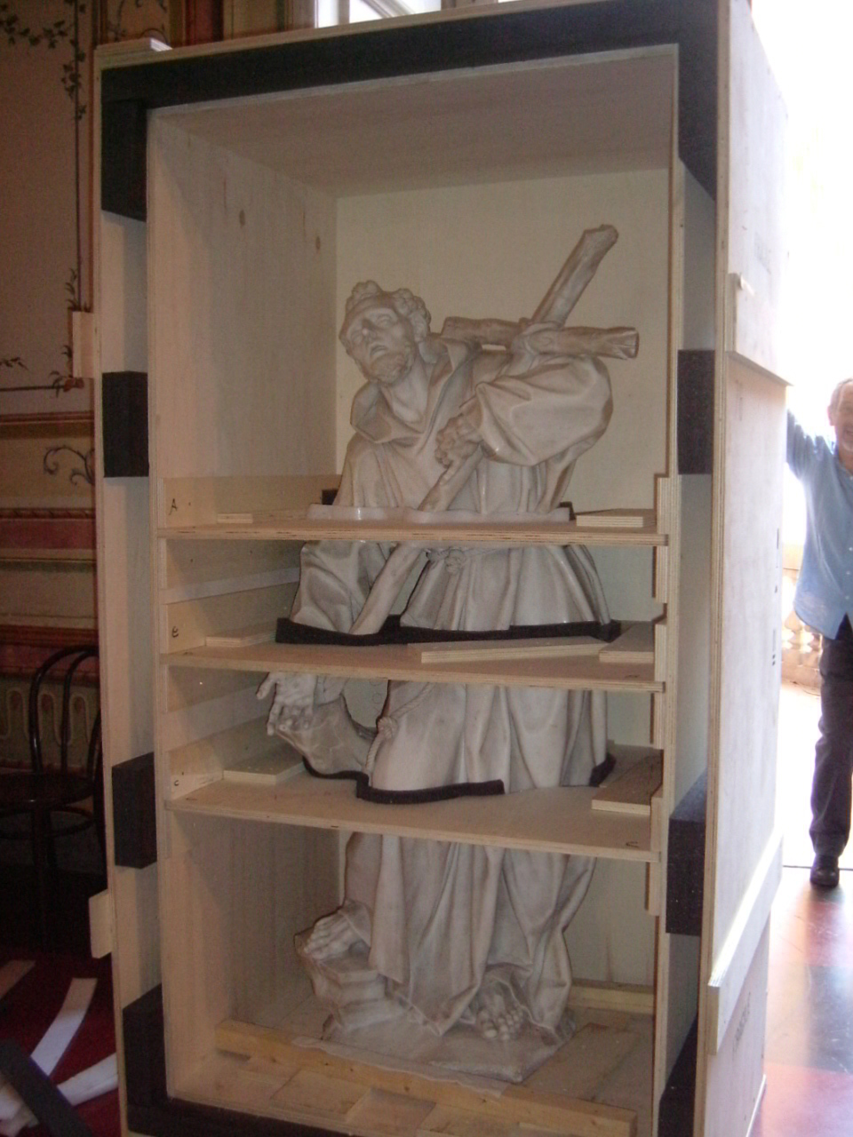 si accede attraverso l'imponente scalone, hanno richiesto un complesso lavoro di imballaggio